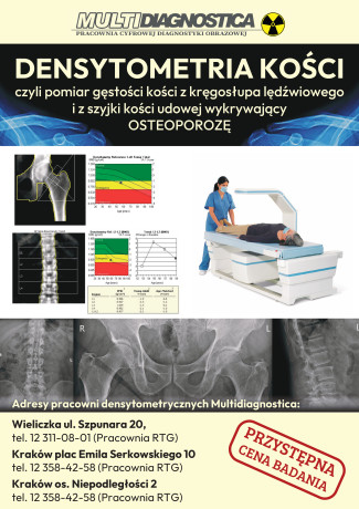 Densytometria jest najlepszą dostępną metodą diagnozowania osteoporozy, również w jej stadium bezobjawowym, czyli przed wystąpieniem złamania kości lub kręgosłupa. Służy także ocenie efektywności prowadzonego leczenia. Jest to rodzaj badania wykorzystującego niewielkie dawki promieniowania rentgenowskiego i ma na celu określenie gęstości mineralnej kości (BMD - Bone Mineral Denstity)